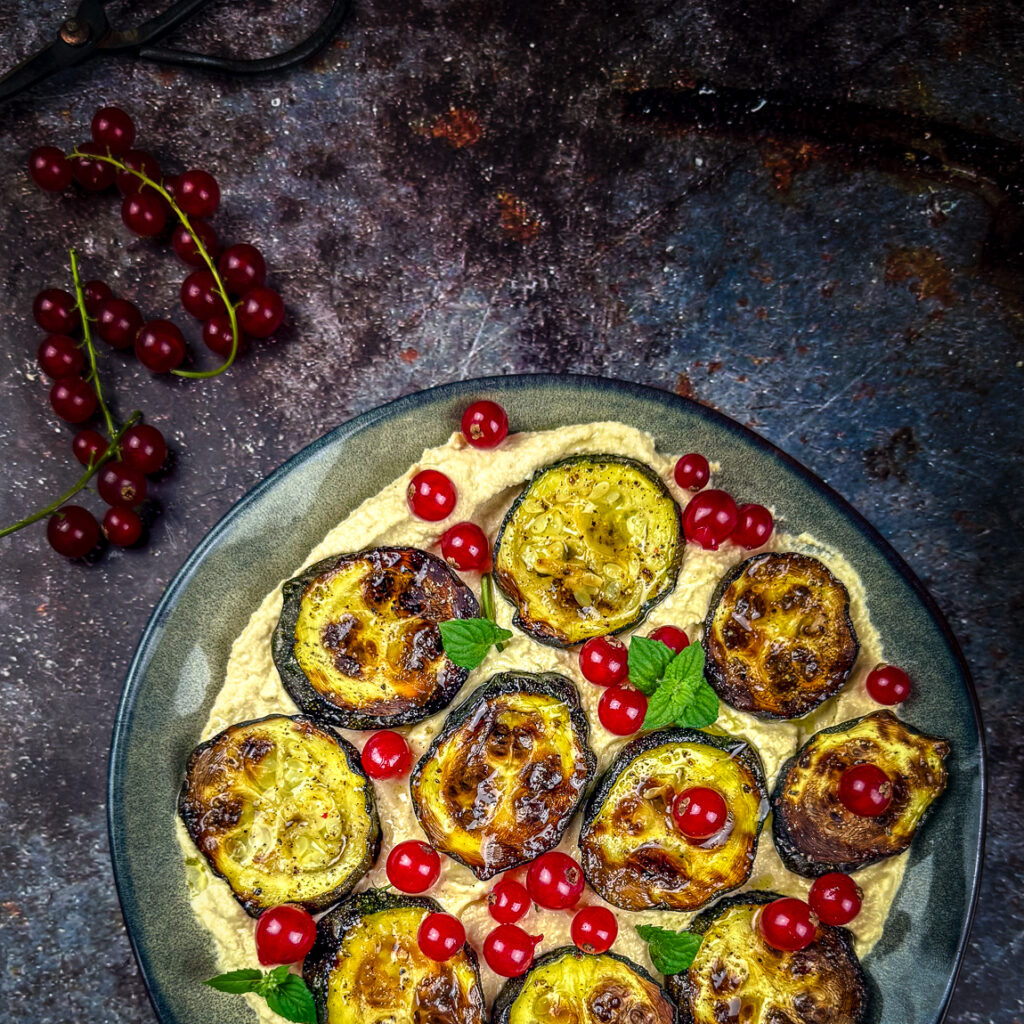 Marinierte Zucchini mit Hummus & Johannisbeeren